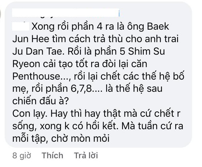Không ít dân mạng thêm chí chê Penthouse nếu có thêm phần 4 nội dung sẽ lê thê không khác gì phim Cô dâu 8 tuổi.