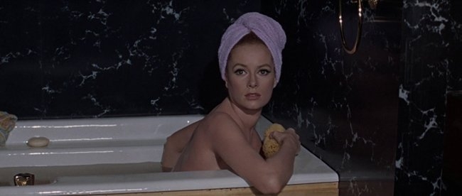 Bond girl Luciana Paluzzi (vai Fiona Volpe) có cảnh tắm gợi cảm trong “Thunderball” (1965). |