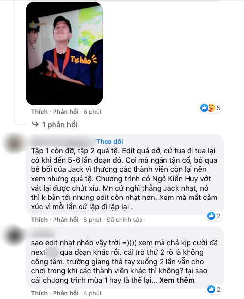 Thậm chí, có khán giả còn yêu cầu ekip sản xuất Running Man Vietnam 2021 mau chóng mời Trấn Thành, BB Trần tham gia mùa này, vì các thành viên mới được bổ sung vào đội hình là Thúy Ngân, Jack quá hiền, không mang đến tiếng cười hài hước như những gì khán giả kỳ vọng. Đặc biệt là Jack, vì nam ca sĩ đang vướng scandal tai tiếng với Thiên An nên cảm tình mà khán giả dành cho anh chàng càng ít hơn.