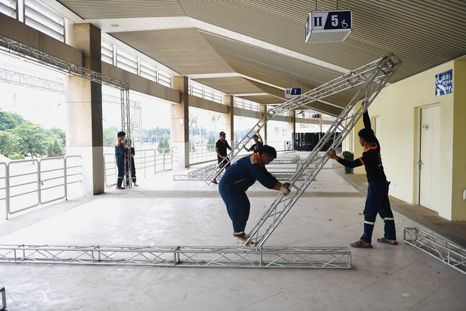 Chỉ còn đúng một tuần nữa là tới show diễn của nhóm nhạc BlackPink tại Hà Nội. Sáng nay (22/7), các công nhân đang hối hả lắp trang thiết bị trên sân vận động Mỹ Đình. Hiện tại mọi công tác chuẩn bị cho đêm biểu diễn của nhóm nhạc xứ Hàn đang trong giai đoạn hoàn tất.