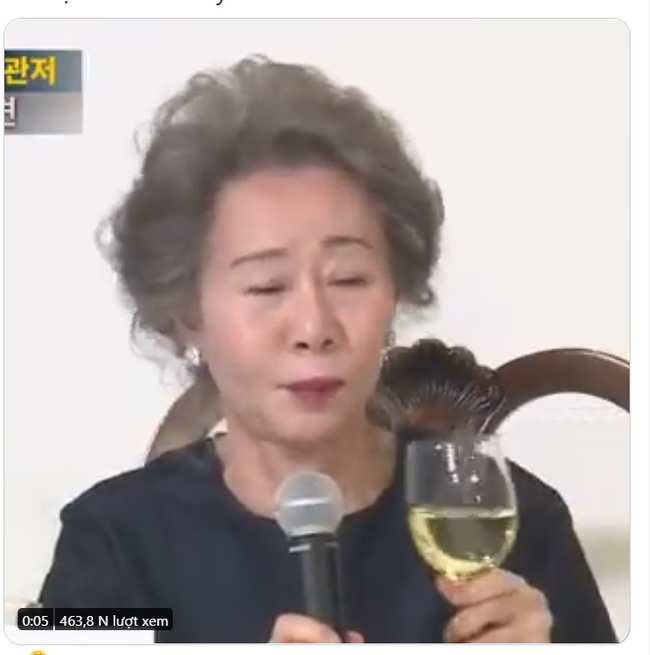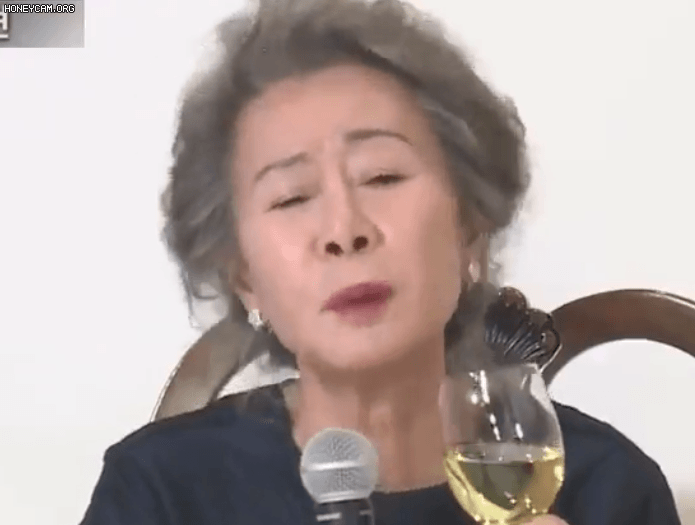 Ngay sau đó, bà Youn Yuh Jung cũng đã có một buổi họp báo với truyền thông quê nhà. Tại đây, nữ diễn viên tỏ thái độ không vừa lòng: "Họ liên tục hỏi tôi Brad Pitt như thế nào?". Thái độ đầy xéo xắt vừa nói vừa nhấp 1 tí rượu của Youn Yuh Jung nhanh chóng thu hút gần nửa triệu lượt xem trên Twitter.