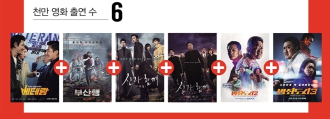 Anh có tới 6 bộ phim vượt mốc 10 triệu tại quê nhà. Sáu bộ phim đó bao gồm: Chạy Đâu Cho Thoát - Train To Busan - Thử Thách Thần Chết 1 - Thử Thách Thần Chết 2 - Thành Phố Tội Phạm 2 - Thành Phố Tội Phạm 3 và sắp tới khả năng cao là Vây Hãm: Kẻ Trừng Phạt cũng sẽ gia nhập câu lạc bộ 10 triệu vé. Ở Hàn, 10 triệu vé là dấu mốc mơ ước của mọi tác phẩm, nhà làm phim.