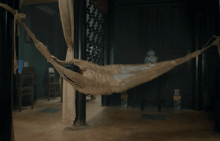 Mới đây, phim ma Việt Bóng Đè kéo đã 'nhá hàng' thêm đoạn clip dài 30 giây, trong đó đáng chú ý là cảnh quay đáng sợ của sao nhí Lâm Thanh Mỹ. Trong cảnh phim này, cô bé đang nằm võng ngủ thì bất ngờ bị cứng người, trên cổ có vết hằn như bị ai đó siết chặt. Sau đó chiếc võng cuốn chặt lấy người cô bé, quay cả chục vòng trên không trung mà không có bất kì ai đứng gần đó.