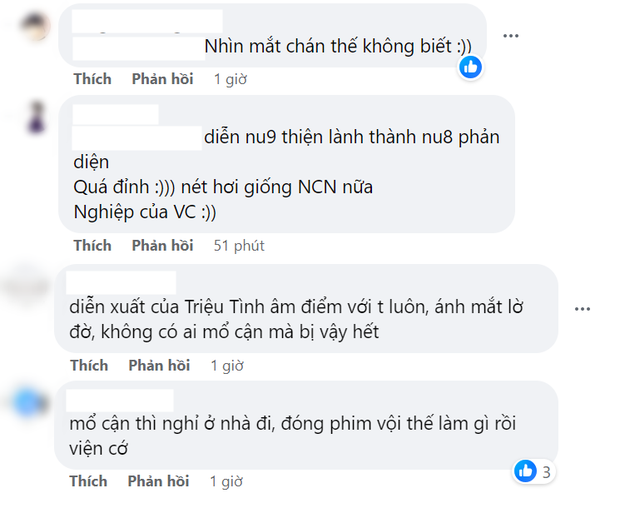 Tạo hình thì có thể bênh nhưng diễn xuất của Triệu Tình mới là điều khiến khán giả bất bình nhất. Ánh mắt của "gà cưng Vu Chính" bị cho là lờ đờ, không cảm xúc, khiến đích thân Vu Chính phải lên bài giải thích, rằng Triệu Tình mới mổ cận nên mới bị như vậy. Dĩ nhiên lời giải thích này không được khán giả chấp nhận, diễn đơ vẫn là diễn đơ, nếu thực sự có vấn đề về sức khỏe thì Triệu Tình nên nghỉ dưỡng trước khi gia nhập đoàn phim mới.