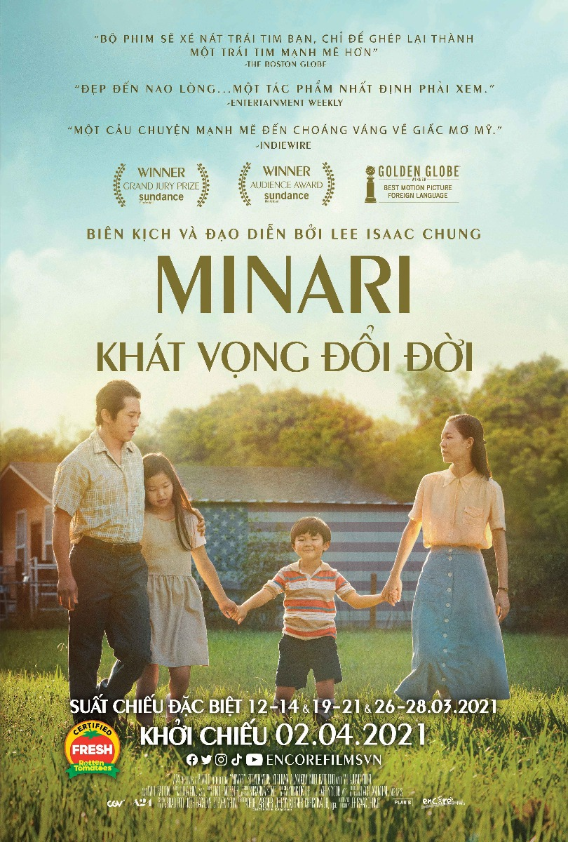 Tại Lễ trao giải Oscar năm nay, tác phẩm “Minari” của đạo diễn Lee Isaac Chung cùng các diễn viên Steven Yeun, Han Ye Ri , Alan Kim, Noel Kate Cho, Youn Yuh Jung và Will Patton, đã giành được 6 đề cử . Dựa trên kinh nghiệm thực tế của đạo diễn, bộ phim kể về một gia đình gồm những người nhập cư Hàn Quốc cố gắng bắt đầu cuộc sống mới ở vùng nông thôn nước Mỹ trong những năm 1980.