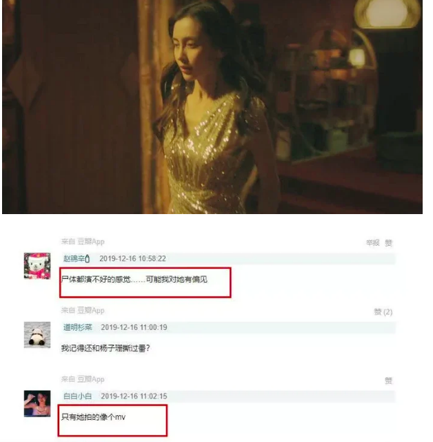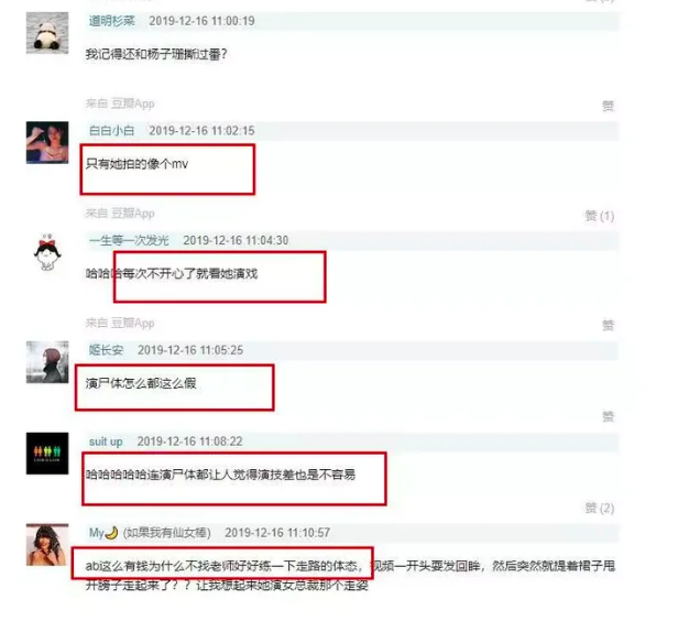 Trong bài đăng của mình, Sina cũng đào bới chuyện Angelababy ê chề vì vai xác chết này. Thực tế, Angelababy đã có nhiều cố gắng trong việc cải thiện diễn xuất, cô cũng tích cực tìm tài nguyên, định vị danh tiếng của mình giữa CBiz tràn ngập mỹ nhân tuyệt sắc. Tuy nhiên, thay vì cứ mải mê lạc vào vòng xoáy của gameshow truyền hình, Angelababy nên tích cực đóng phim hơn.