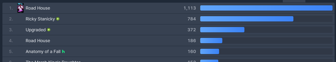 Ra mắt từ ngày 21/3, dự án phim Road House nhanh chóng vươn lên vị trí top 1 toàn cầu tại mảng phim điện ảnh của Amazon Prime. Dự án thuộc thể loại hành động, giật gân chiếm lĩnh vị trí này ở hơn 100 nước, đỉnh điểm lên đến 108 thị trường trên thế giới.