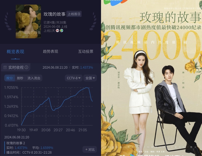 Cụ thể, phim liên tục phá kỷ lục về độ hot trên nền tảng Tencent Video cho dòng phim ngôn tình hiện đại. Chỉ sau 25 phút, Câu Chuyện Hoa Hồng trở thành phim đạt mức nhiệt độ 22.000 điểm nhanh nhất nền tảng, thành tích trước đó thuộc về Thừa Hoan Ký của Dương Tử với 30 phút. Sau đó, phim cũng phá các mốc 23.000, 24.000 điểm nhiệt nhanh nhất năm 2024.
