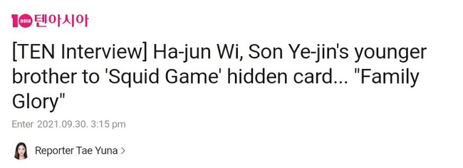Anh chàng chia sẻ: "Vì là em trai của chị Son Ye Jin nên tôi phải cố gắng hết sức. Tôi không nghĩ rằng điều này sẽ khiến bản thân mình lo lắng mà sẽ tập trung, cố gắng hết sức, để mọi người thấy một hình ảnh mới mẻ và phát triển của tôi. Tôi nghĩ rằng Squid Game chính là một vinh dự đối với gia đình, công ty của tôi".