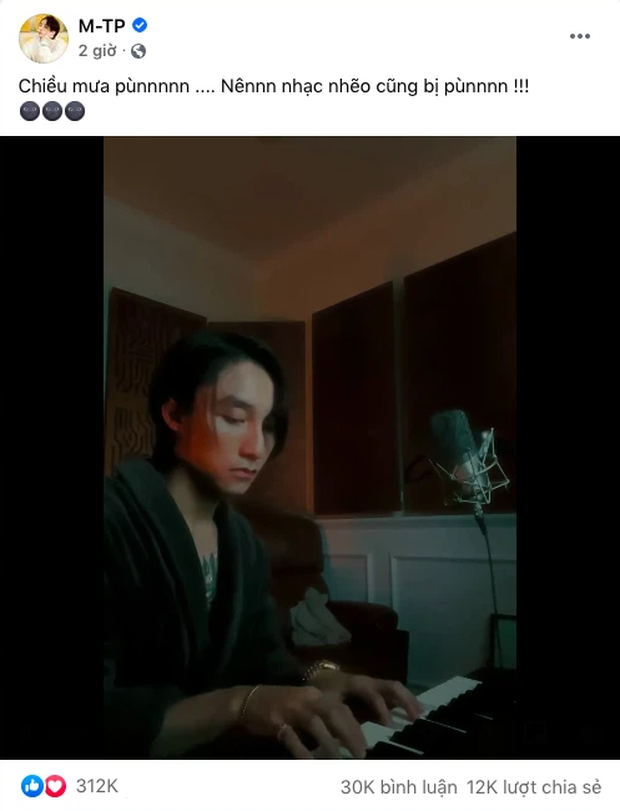 Cũng trong tối qua, Sơn Tùng M-TP đã đăng tải một đoạn clip cùng dòng caption: "Chiều mưa pùnnnnn... Nênnn nhạc nhẽo cũng bị pùnnnn" (Chiều mưa buồn... Nên nhạc nhẽo cũng bị buồn). Anh chàng ngồi chơi đàn, hát vu vơ còn cả rap một bản demo mới toanh. Dân mạng dự đoán nhiều khả năng Sơn Tùng M-TP sắp trở lại bằng một ca khúc mới trong tương lai gần?