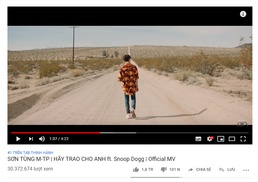 "Lên sóng" vào ngày 1/7, MV "Hãy Trao Cho Anh" đã chứng tỏ mình là "quái vật" đáng gờm của làng nhạc Việt khi không chỉ phá vỡ mọi kỉ lục ở thị trường nội địa mà còn xâm lấn vào địa hạt của nhiều quốc gia có nền âm nhạc phát triển như Mỹ hay Hàn Quốc. Mới đây, sản phẩm mới nhất của Sơn Tùng M-TP đã lập kỉ lục chưa từng có trong lịch sử nhạc Việt trên "lãnh địa" Youtube Hàn Quốc.