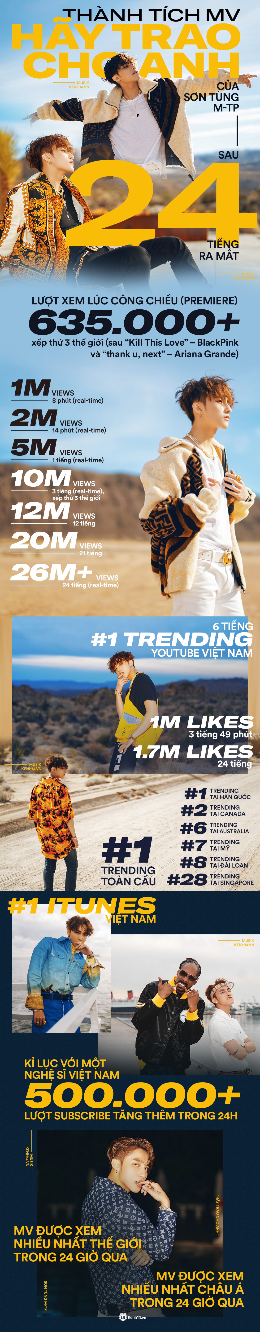Hiện tại, số view của "Hãy Trao Cho Anh" đã lên tới con số 26 triệu view . Các fan của Sơn Tùng đang hồi hộp chờ Youtube xác nhận số lượt xem chính thức, nhưng dù vậy, nam ca sĩ đã vượt qua kỉ lục cũ của chính mình với "Chạy ngay đi" và trở thành nghệ sĩ solo có số view sau 24 giờ đầu cao thứ 2 khu vực châu Á.