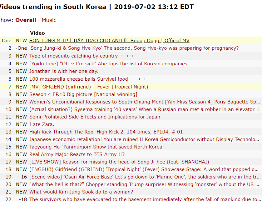 Đây là thành tích vô tiền khoáng hậu, chưa nghệ sĩ VPop nào làm được. Đặc biệt thị trường âm nhạc xứ sở Kim Chi vốn nổi tiếng không "dễ xơi", đến nhiều nhóm nhạc Kpop vẫn chưa thể đạt được thành tích no.1 trending trên Youtube của đất nước này.