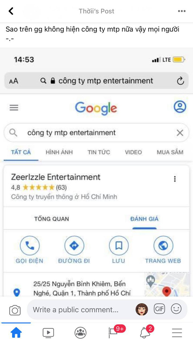 Đến chiều cùng ngày, nhiều người còn tinh ý phát hiện ra cụm từ khoá "Công ty M-TP Entertainment" khi tìm kiếm trên Google đã không còn xuất hiện nữa, thay vào đó, Google hiển thị 1 công ty khác không hề liên quan.