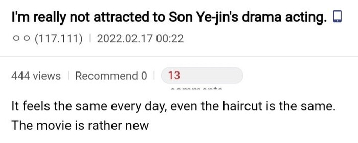 Trên thực tế, đây có lẽ là lần hiếm hoi Son Ye Jin bị khán giả chê bai diễn xuất thiếu tinh tế. Bản thân Son Ye Jin đã hoạt động trong nghề rất lâu và sở hữu nhiều tác phẩm nổi tiếng như Something In The Rain (Chị đẹp mua đồ ăn cho tôi), Crash Landing On You (Hạ cánh nơi anh),...