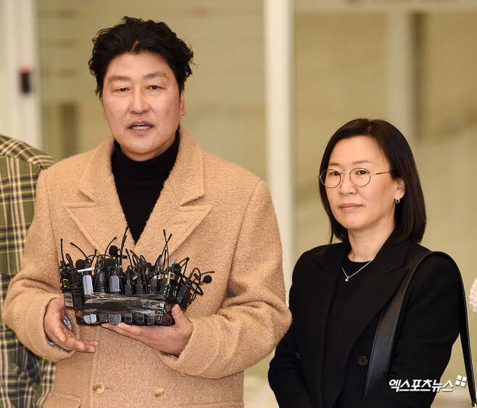 Trước sự chào đón nồng nhiệt của người hâm mộ và truyền thông, Song Kang-ho nói lời cảm ơn và chia sẻ thành tích của anh là nhờ có sự ủng hộ của mọi người.