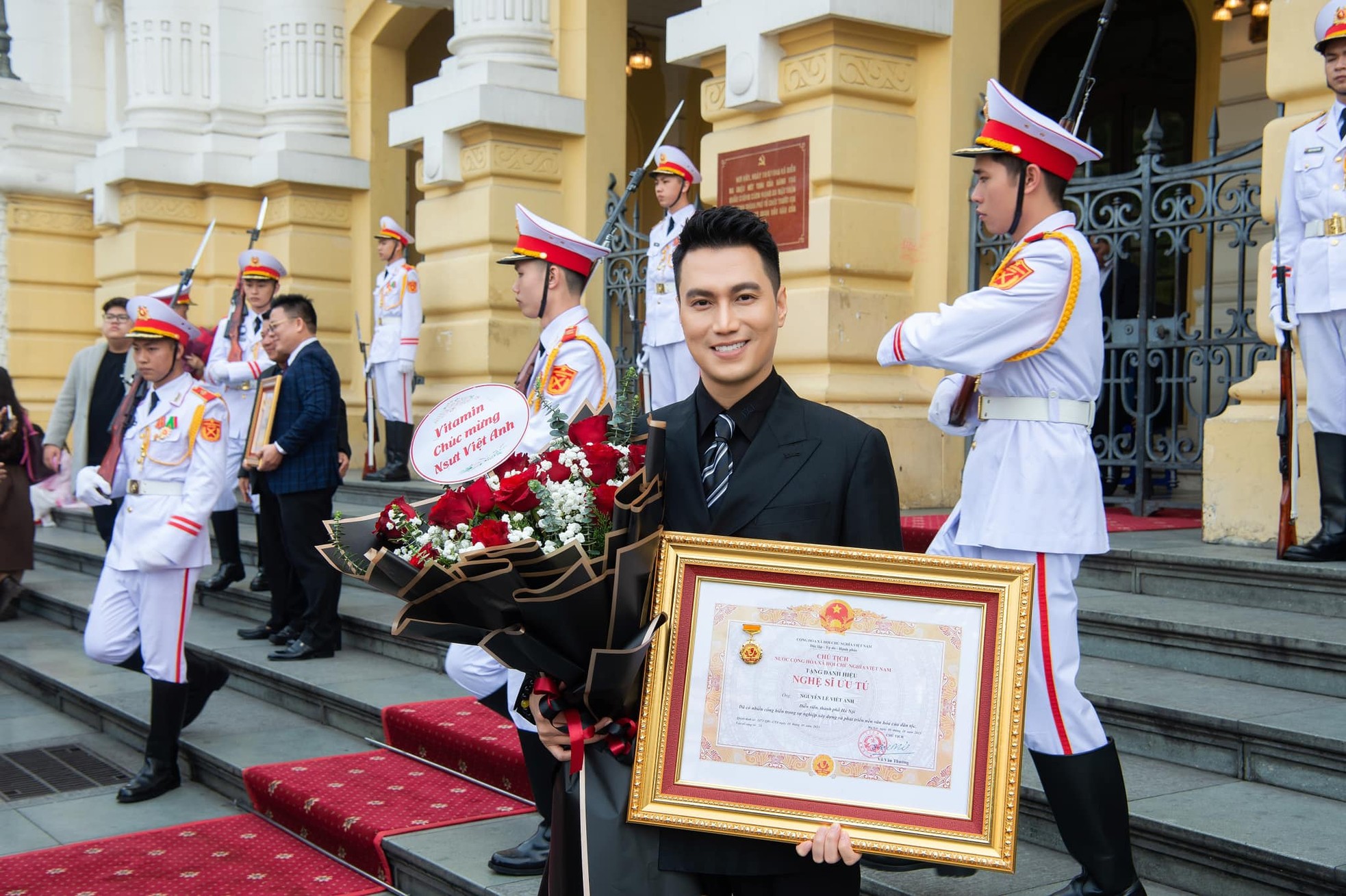 "Chưa bao giờ Việt Anh có món quà lớn lao và ý nghĩa dành cho gia đình mình như món quà hôm nay. Xin hứa sẽ cố gắng hơn nữa, trách nhiệm hơn nữa để xứng đáng với danh hiệu này", anh nói.