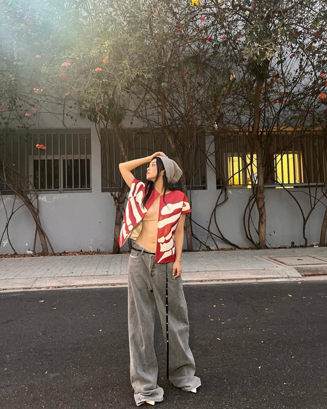 Trong khi ai cũng chọn đầm váy điệu đà thì riêng một mình đại diện Việt Nam xuất hiện với trang phục jeans cá tính. Biểu cảm của cô cũng được cho là không mấy ăn nhập với bộ đồ.
