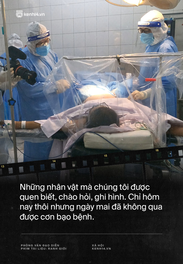 Khi cấp cứu những người bệnh mất ý thức, tôi không dừng lại. Tôi buộc phải ghi lại cảnh các y bác sĩ đã hết mình cứu chữa bệnh nhân như thế nào. Họ tính toán ra sao? Lao động thế nào để giành lại sự sống cho bệnh nhân. Chỉ có duy nhất một lần tôi phải dừng máy quay. Đó là tiếng hét của một thai phụ quá đau đớn. Và tôi thấy cần phải dừng máy quay vì đối diện trước tiếng hét ấy, tôi không thể bấm máy tiếp được. Rồi khi thai phụ hết oxy cần phải thay, nếu không có y bác sĩ ở đó, tôi cũng dừng máy ra để gọi. Lần khác, khi đang quay hình, các y bác sĩ khiêng bệnh nhân từ giường này sang giường khác, bệnh nhân thì nặng, y bác sĩ lại ít, các bạn ấy gọi mình thì mình cũng sẵn sàng buông máy để hỗ trợ. Những cái đó là những khoảnh khắc không mang tính quyết định, không ảnh hưởng đến thước phim của mình. Có thể mình quay được, đưa vào sẽ hấp dẫn và hay hơn. Nhưng mình cũng xác định được cái gì cần và không cần ở thời điểm đấy.