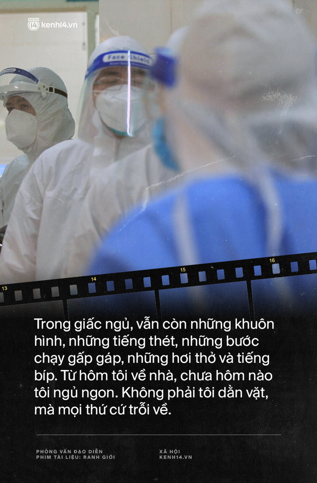 Với các y bác sĩ, nhìn họ làm việc với một cường độ lớn như vậy cũng cho tôi một động lực để tiếp tục. Tôi nhớ câu chuyện của một điều dưỡng, khi tôi bắt đầu ghi hình cũng là lúc bạn mới làm việc được 3 ngày. Sau 18 ngày, bạn nhiễm Covid. Mãi đến khi đến thăm bạn ở bệnh viện thu dung, chúng tôi mới biết con trai bạn cũng là F0. Và điều đó không làm bạn nhụt chí, điều bạn mong mỏi nhất khi đó là muốn làm sao có thể nhanh khỏi bệnh để trở về và tiếp tục công việc. Chỉ một câu chuyện đó thôi nhưng cũng cho tôi thấy cuộc sống này chắc chắn vẫn sẽ có những khó khăn và ranh giới, nhưng đâu đó, nếu có nghị lực và niềm tin thì ta sẽ vượt qua được ranh giới ấy.