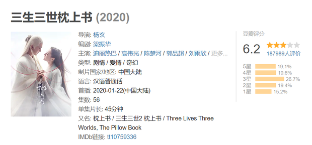 Ngay sau khi bộ phim kết thúc, điểm Douban đã lập tức chạm mốc 6.2 với gần 187 nghìn lượt bình chọn. Dù không được đánh giá cao như Tam Sinh Tam Thế: Thập Lý Đào Hoa nhưng Chẩm Thượng Thư cũng chỉ thua kém có 0.3 điểm. Chưa kể thời điểm hiện tại, số người bình chọn vẫn không ngừng tăng do sức hút của tập cuối bởi vậy con số có lẽ không chỉ dừng lại ở 6.2.