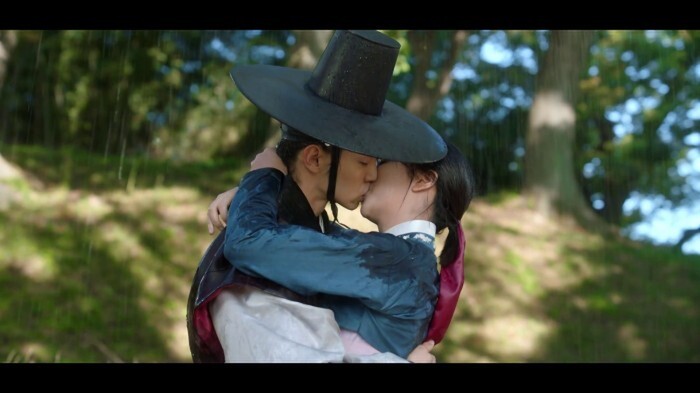 Một trong những nụ hôn dưới mưa kinh điển trong phim cổ trang khiến bất kỳ "mọt" phim Hàn nào cũng phải rung động là của cặp đôi Dong Joo (Kim So Hyun vào vai) và Nok Du (Jang Dong Yoon) trong The Tale Of Nokdu.