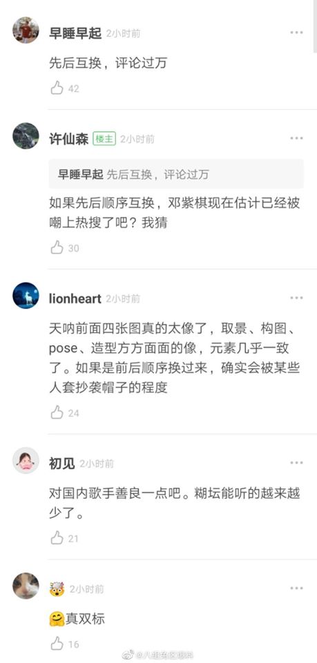 Nhiều người lại cho rằng vì không gian chụp ảnh khá phổ biến nên rất dễ dẫn đến chuyện hình ảnh giống nhau. Nếu vì 1 vài bức ảnh quảng bá mà nhận xét Taylor Swift đạo nhái Đặng Tử Kỳ thì quả thực có chút không công bằng. Fan Đặng Tử Kỳ vì muốn thần tượng nhảy lên Hot Search Weibo nên mới vu cho Taylor Swift - ngôi sao ở tầm thế giới tội đạo nhái.