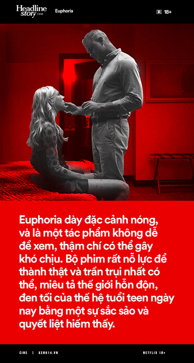 Lấy ví dụ như Euphoria gây tranh cãi với loạt cảnh rõ mồn một chỗ nhạy cảm nam giới từ lâu trước khi Sex/Life gây bàn tán. "Euphoria dày đặc cảnh nóng, và là một tác phẩm không dễ để xem, thậm chí có thể gây khó chịu. Bộ phim rất nỗ lực để thành thật và trần trụi nhất có thể, miêu tả thế giới hỗn độn, đen tối của thế hệ tuổi teen ngày nay bằng một sự sắc sảo và quyết liệt hiếm thấy" - một nhà phê bình nhận xét. Cho dù đả động tới daddy issue (ham muốn tình dục với người đàn ông lớn tuổi) hay BDSM, sugar baby thì bộ phim không miêu tả tình dục ở giới trẻ như một thứ gì đó hào nhoáng và đáng để cổ xúy, thay vào đó tạc ra rõ nét những bức chân dung của một tuổi trẻ lạc lối trong thời hiện đại.