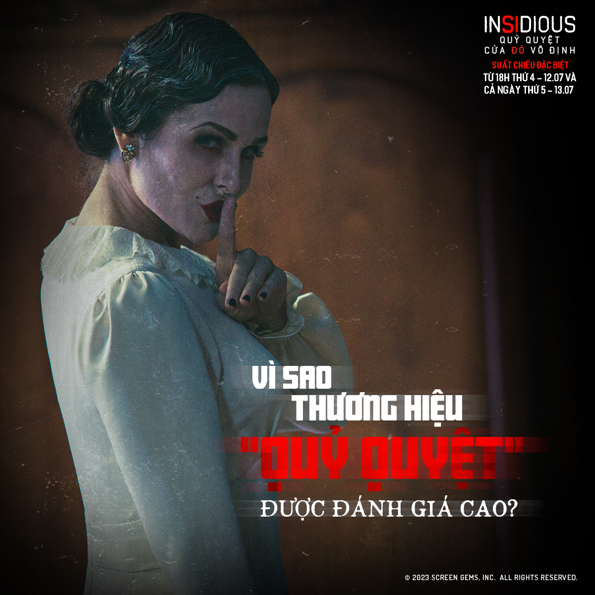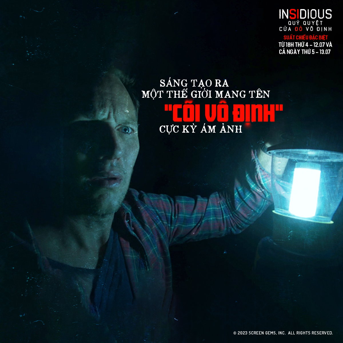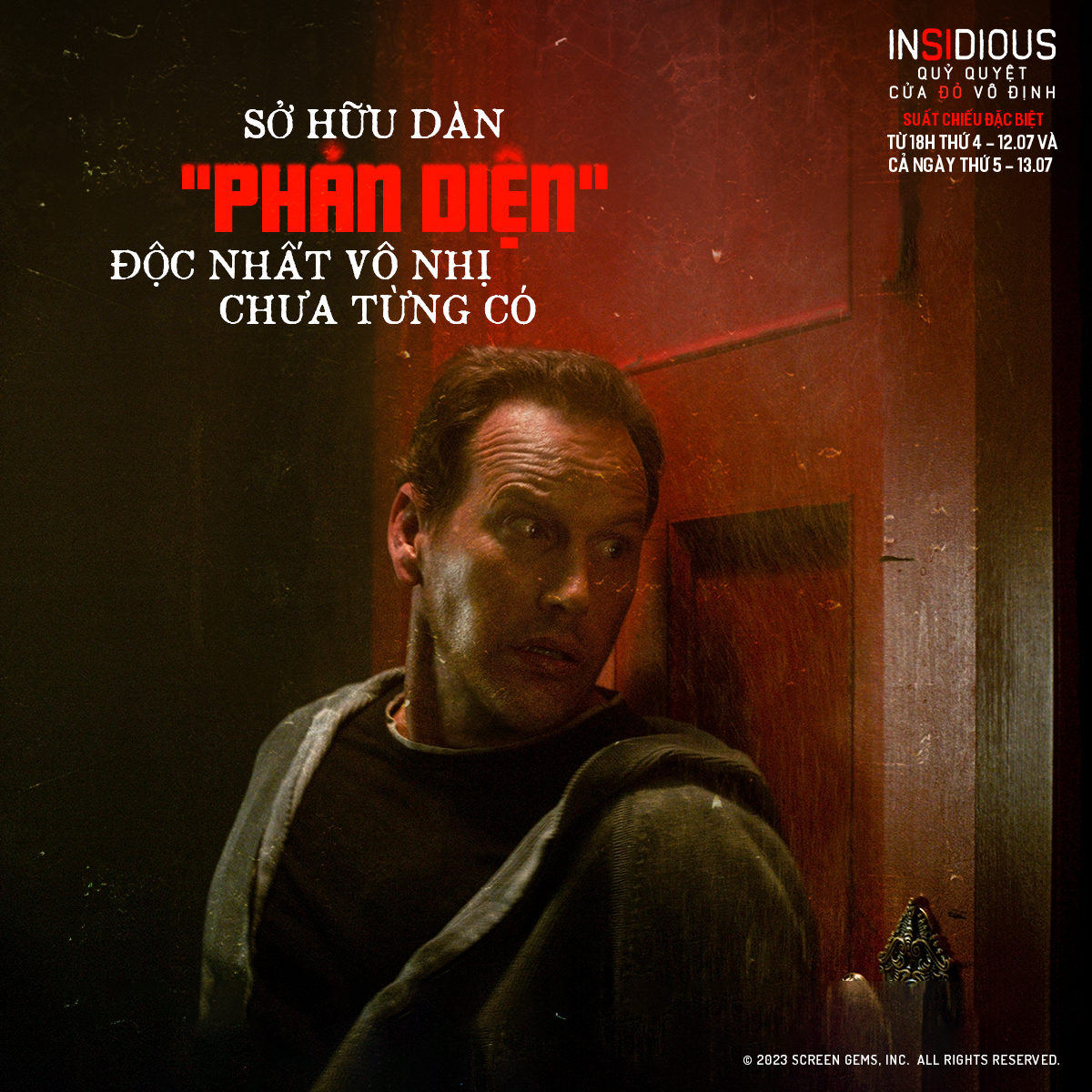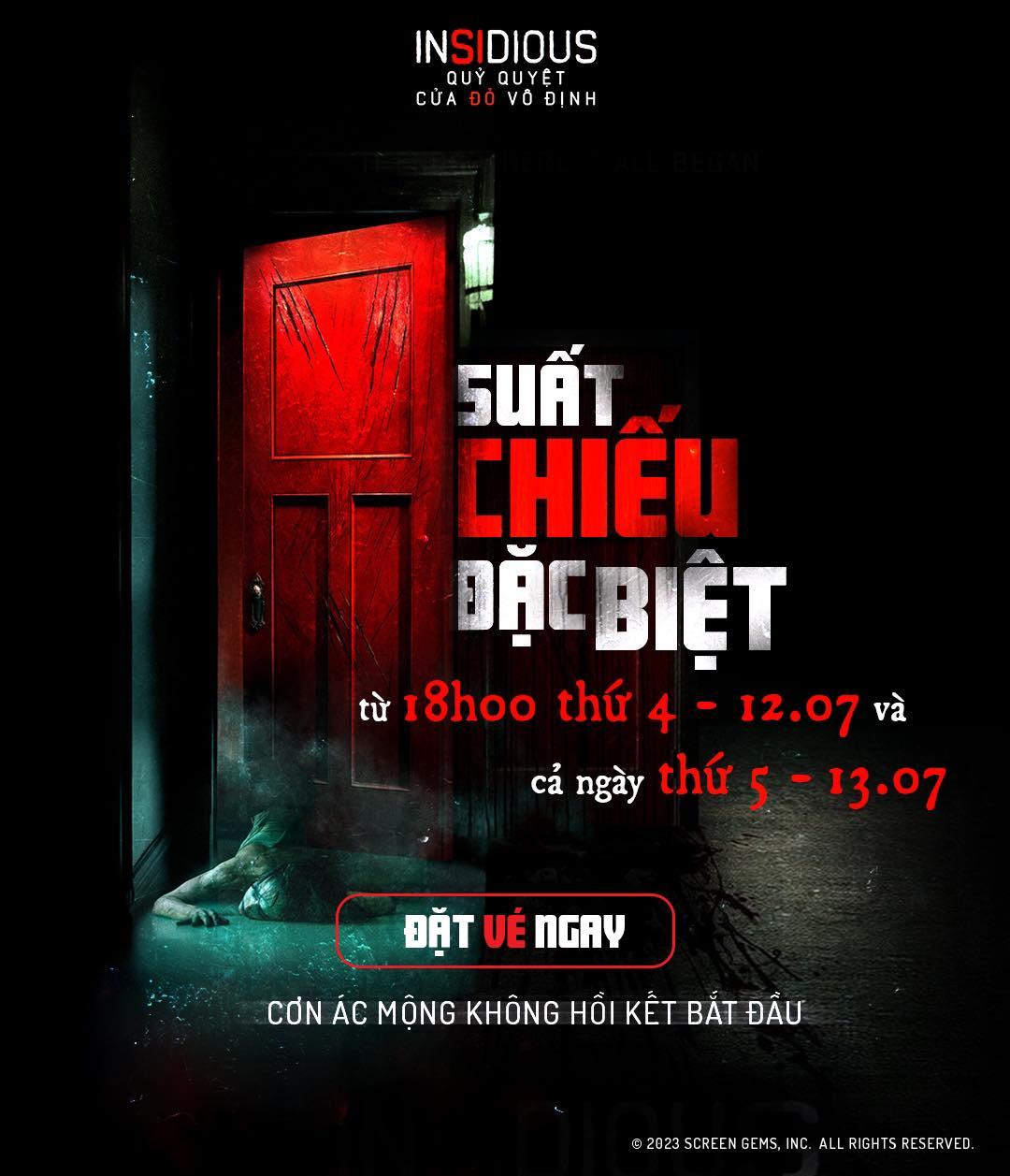 Insidious: The Red Door (Tựa Việt: Quỷ Quyệt: Cửa Đỏ Vô Định) có suất chiếu sớm từ 18h00 thứ Tư (12.07) và cả ngày thứ Năm (13.07) và chính thức ra rạp thứ Sáu (14.07) trên toàn quốc.