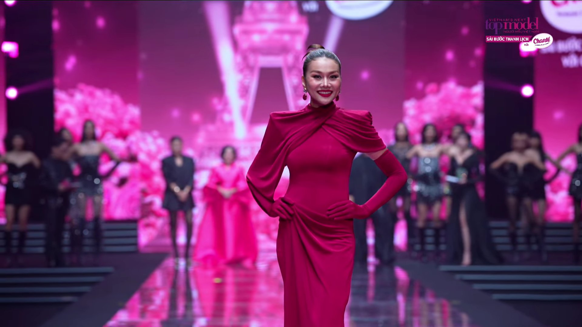 Thanh Hằng xuất hiện trong thiết kế đỏ rực rỡ, thu hút mọi ánh nhìn khi catwalk với thần thái quyền lực. Nữ siêu mẫu chia sẻ: “Chung kết hôm nay giống như một buổi lễ tốt nghiệp. Sau đêm nay, không chỉ quán quân mà cả 14 cô gái còn lại đều sẽ bước tiếp trên con đường riêng của mình. Với những gì đã học được từ Vietnam’s Next Top Model, các bạn hoàn toàn có thể chủ động phát triển bản thân và góp phần thúc đẩy ngành người mẫu Việt Nam năm 2025”.