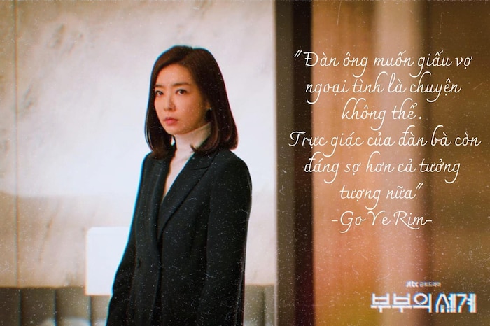 Về Ye Rim, cô đã tha thứ cho Se Hyuk ngoại tình một lần và cô cũng đã cố gắng ứng xử nhẫn nhịn để gìn giữ cuộc hôn nhân này. Tuy nhiên, mọi chuyện đã vượt quá giới hạn, cuộc hôn nhân mục nát này của cô vốn chẳng có gì đáng trân trọng để mà giữ, việc Ye Rim dứt khoát rũ bỏ Se Hyuk chính là giải pháp mà cả thế giới này ủng hộ, với Ye Rim mà nói thì “Ngoại tình lần một là lỗi của anh nhưng để anh ngoại tình lần hai thì vẫn là lỗi của anh thôi”,vì trong mối quan hệ này cô chẳng làm gì có lỗi cả.