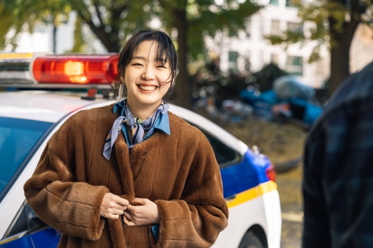 Kim Go Eun gây ấn tượng với nụ cười tỏa nắng, tràn đầy năng lượng sau khi thực hiện những cảnh quay hành động quyết liệt. Vai diễn lần này của Kim Go Eun là một cô nàng thám tử mạnh mẽ, cá tính.