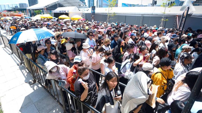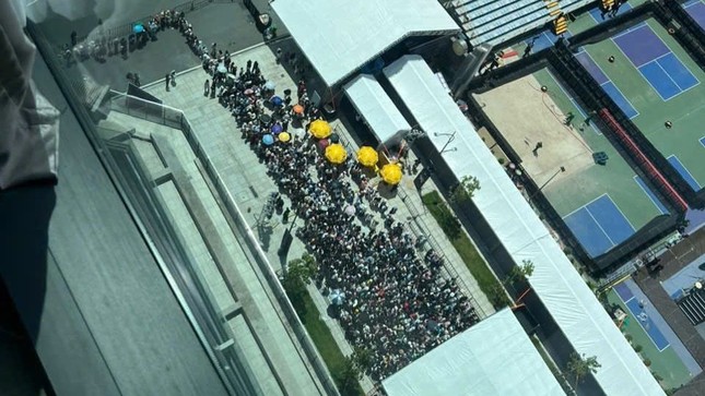 Người đi xem phải trang bị mũ, áo chống nắng... Vài người dùng ô trong khu vực check-in nhưng không được mang vào sân bởi đây là vật dụng bị cấm ở buổi diễn.