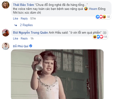 Thí sinh Trần Hà Thu thuộc team HLV Hồ Hoài Anh tại "The Voice - Giọng hát Việt 2019" đang gây ra khá nhiều tranh cãi sau khi cô chọn ca khúc "Xin lỗi anh quá phiền" của Đông Nhi để biểu diễn ở một buổi giao lưu cùng team. Sau khi đón nhận khá nhiều phản ứng gay gắt của fan Đông Nhi nói riêng và cộng đồng mạng nói chung, Hà Thu đã đáp trả lại một cách vô cùng thẳng thắn rằng: "Chị Đông Nhi không phải là Idol của tôi thì việc tôi không biết gì về chị ấy là sai sao?".