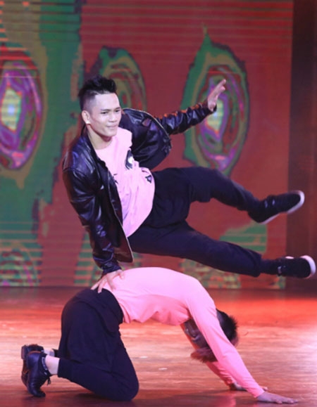 Trước đó, Toàn Trung thể hiện các động tác vũ đạo uyển chuyển |