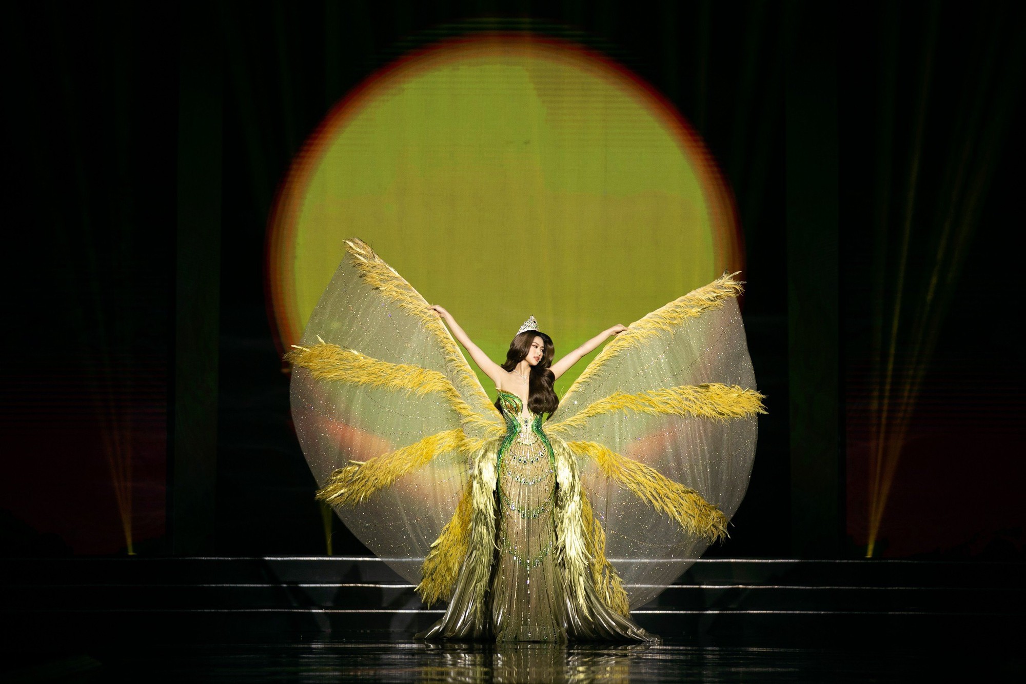 Tối 27/8, Miss Grand Vietnam 2022 Đoàn Thiên Ân đã thực hiện nghi thức trước khi trao vương miện cho người kế nhiệm trên sân khấu Chung kết tổ chức tại TP.HCM.