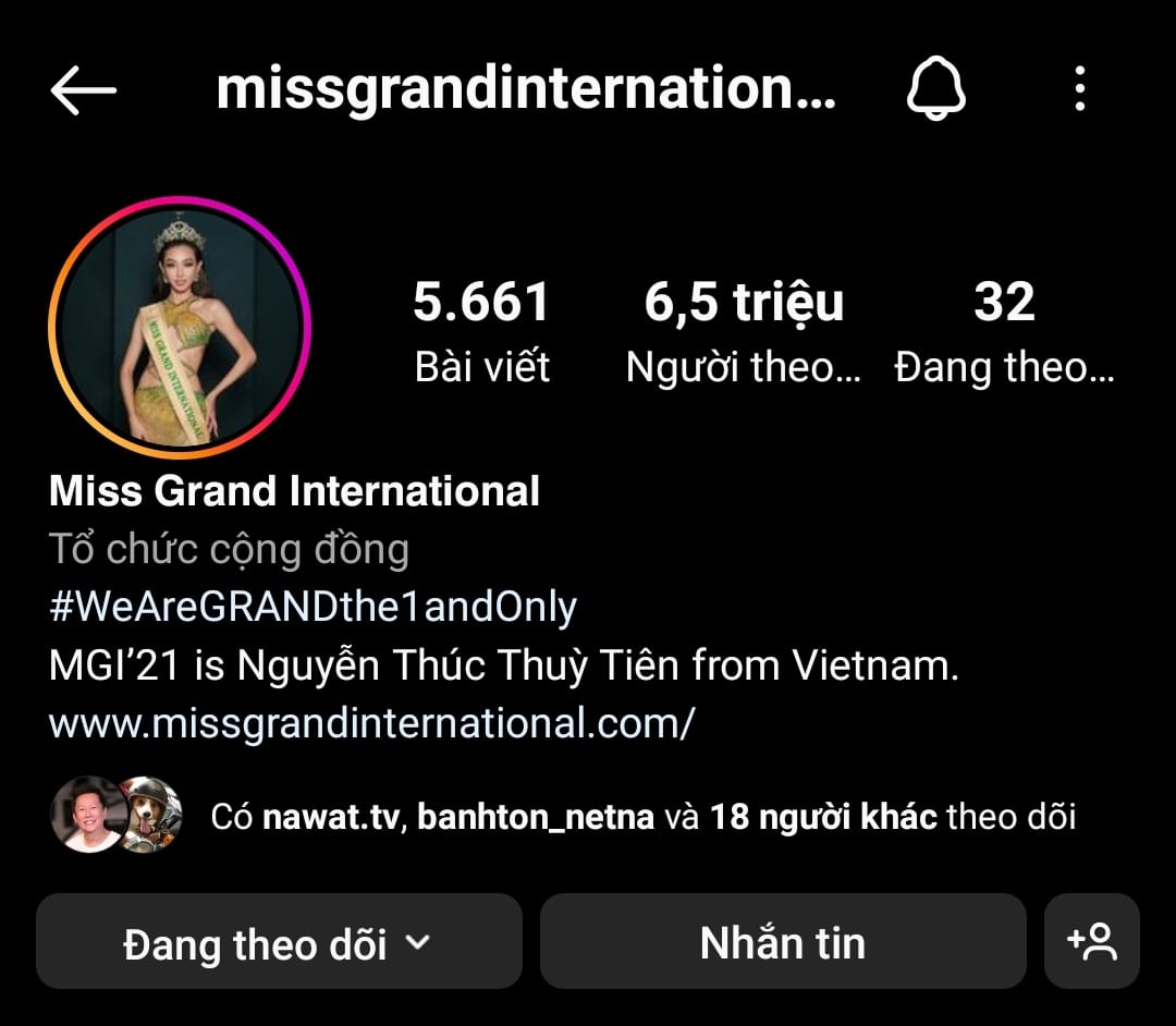 Tuy nhiên, con số này đang giảm một cách chóng mặt. Chưa đầy 10 phút sau khi Thiên Ân bị loại, trang chủ Miss Grand đã "bay" gần 1 triệu tài khoản theo dõi. Nhiều ý kiến cho rằng con số này sẽ tiếp tục giảm mạnh trong thời gian tới.