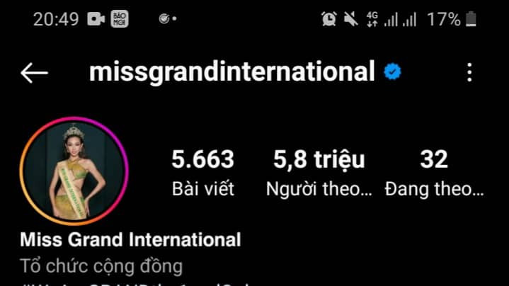 20:52 Trang Instagram của tổ chức Hoa hậu Hoà bình Quốc tế tụt 700.000 người theo dõi