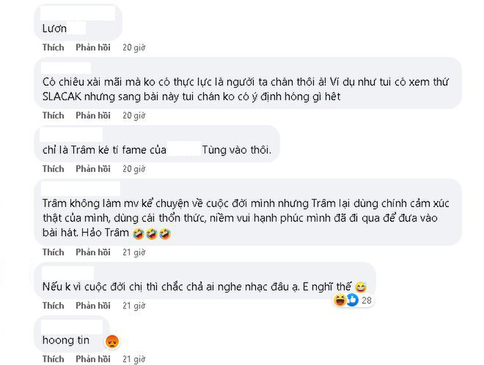 Ở nhiều diễn đàn, khán giả đều "ngán ngẩm" trước hướng đi mới của Thiều Bảo Trâm. Nhiều người cho rằng cô đang cố tình xây dựng nội dung MV và các bài hát có điểm tương đồng với "câu chuyện tình tay ba" đầy thị phi: "Có chiêu xài mãi mà không có thực lực là người ta chán thôi à!", "Chắc chỉ có Trâm mới thanh minh kiểu này, cứ sợ làm sản phẩm để ám chỉ ai à", "Nếu không vì cuộc đời chị thì chắc chả ai nghe nhạc đâu ạ, em nghĩ thế"...