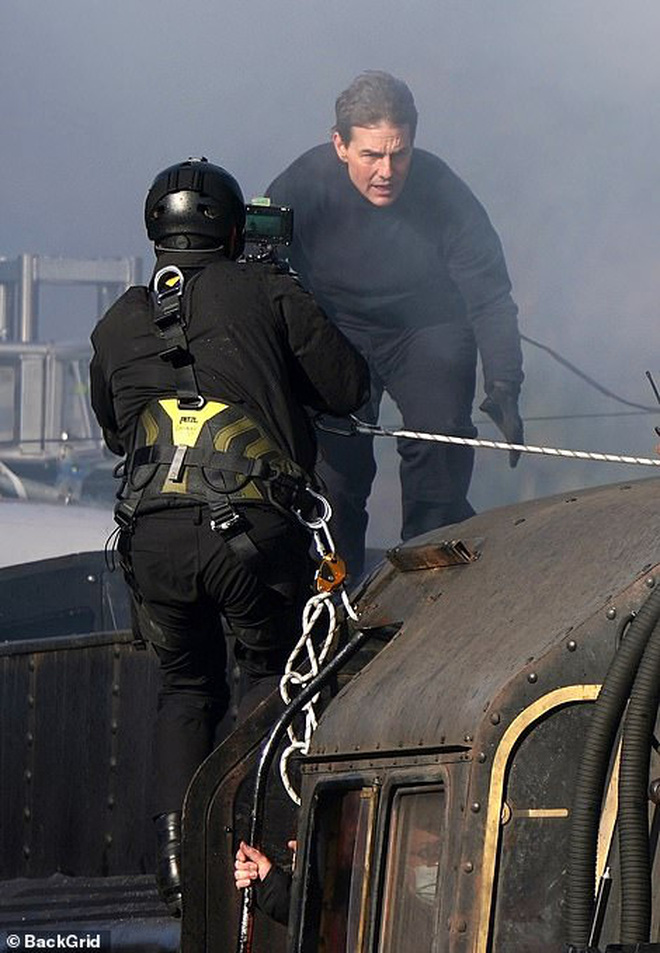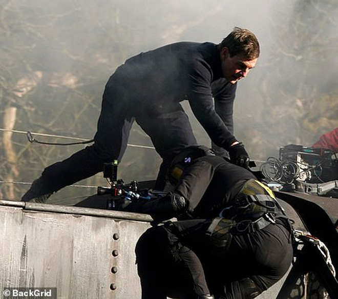 Trong phân cảnh này, Tom Cruise đang thủ vai nhân vật điệp viên Ethan Hunt, đồng hành cùng "bạn gái trên phim" là nữ diễn viên Hayley Atwell. Cặp đôi sẽ có một cảnh đầy căng thẳng khi chạy đua trên nóc tàu hỏa. Người thợ quay phim phụ trách phân đoạn này cũng chính là người đã suýt đối mặt với tử thần nếu không nhờ Tom Cruise giúp đỡ. Dẫu sao, trên người anh chàng cũng được chằng đủ loại dây buộc an toàn, trong khi Tom Cruise thì "vườn không nhà trống".