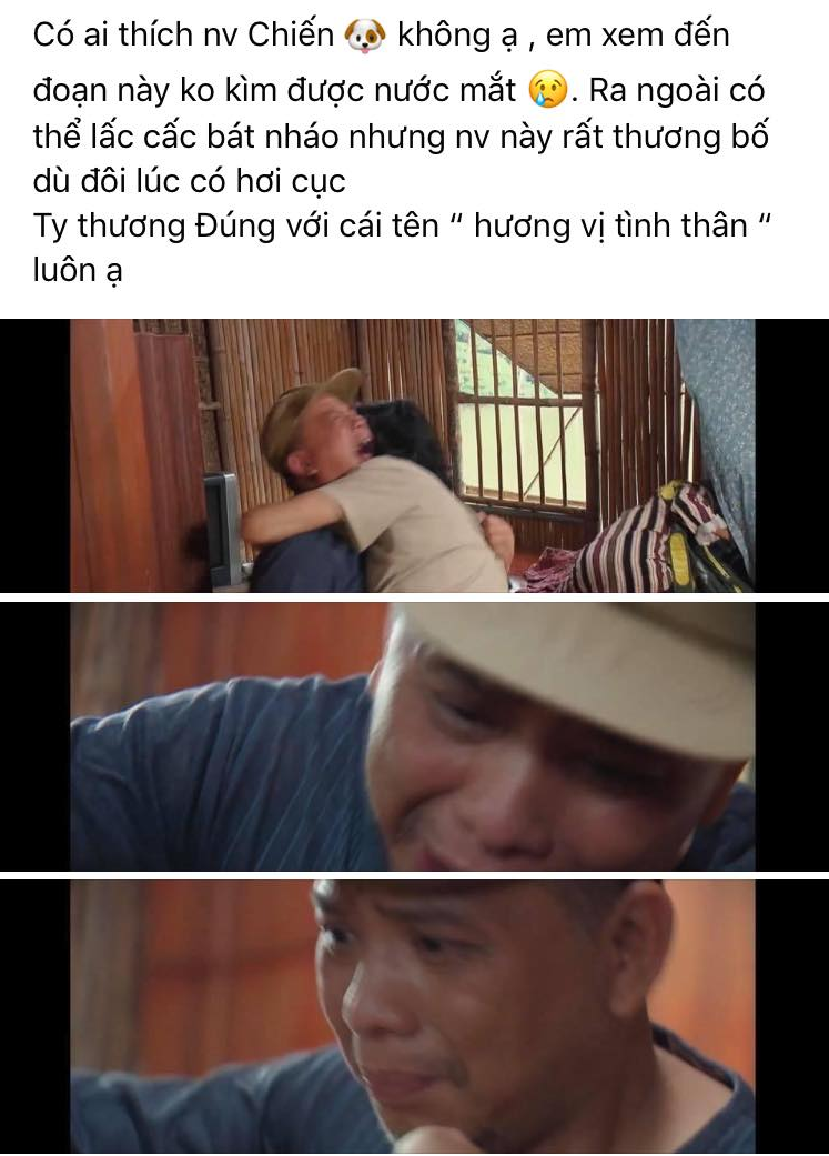Tập 11 Hương vị tình thân phần 2 lên sóng tối qua đem đến nhiều khoảnh khắc xúc động cho khán giả, trong đó có phân đoạn của Chiến 'chó' tại nhà ông Sinh.