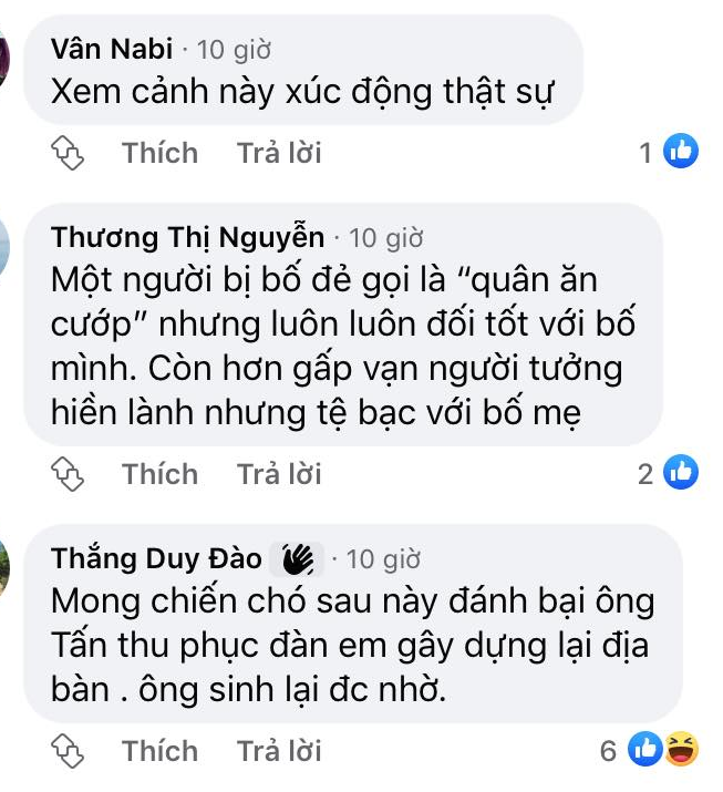 Bên cạnh đó, dù là kẻ thù của nhau, nhưng ông Sinh cũng không bỏ rơi cha con Chiến 'chó' lúc hoạn nạn và điều này khiến khán giả đánh giá cao sự nhân văn mà phim muốn truyền tải.