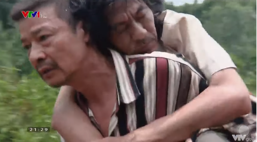 Sau đó, Chiến 'chó' vội cõng bố chạy băng rừng để đưa ông đi chữa bệnh. Ông Sinh cũng tất tả mang theo balo quần áo của mình và cha con Chiến 'chó' chạy theo sau. Đường xa, Chiến 'chó' nhiều lần khụy ngã nhưng vẫn cố gắng cõng bố chạy tiếp. Đến khi thấy Chiến 'chó' kiệt sức, khiến ai cha con ngã lăn, ông Sinh đã cõng giúp Chiến 'chó' rồi cùng chạy ra đường lớn.