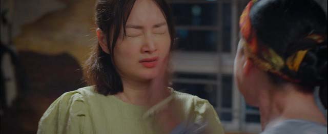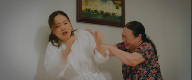 Trong lúc bà Hiền vào phòng nghe điện thoại, Thương và Khánh đã xô xát dẫn tới chị chồng ngã, kéo theo chiếc cốc thủy tinh rơi xuống đất vỡ tan. Thấy bà Hiền từ trong nhà đi ra, Thương cố tình giẫm vào mảnh thủy tinh để chân chảy máu, rồi lu loa với mẹ và nói Khánh hành hung mình. Bà Hiền chưa rõ đầu đuôi câu chuyện thế nào đã giáng ngay một cái tát cho con dâu.