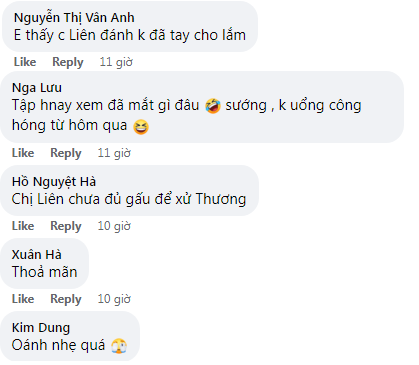 Trên MXH, nhiều khán giả bày tỏ sự hả hê khi Thương chính thức phải 'trả nghiệp', phải nhận 'liên hoàn tát', bị đánh đập tả tơi. Tuy nhiên, số khác cho rằng những gì Thương phải trả giá vẫn còn quá nhẹ nhàng.