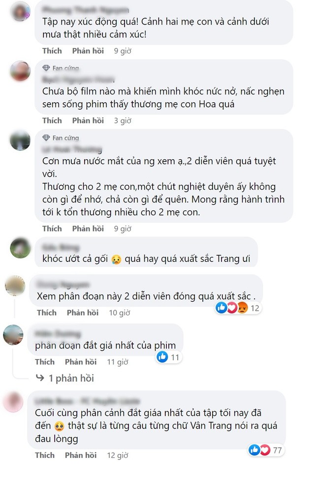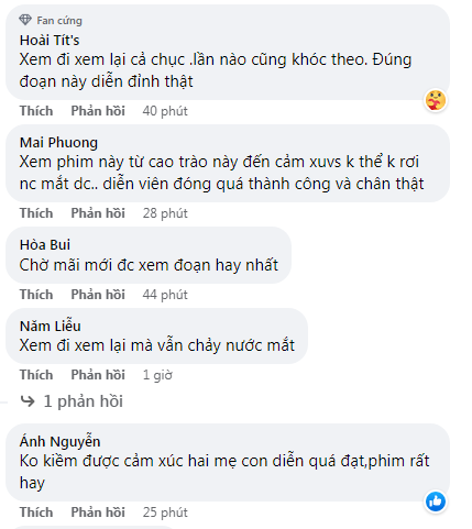 Những tình tiết cao trào đầy xúc động về cuộc gặp lại đau đớn của hai mẹ con được khán giả nhiệt tình chia sẻ, đặc biệt dành nhiều lời khen cho diễn xuất của dàn diễn viên.