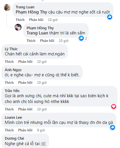 Trong một clip đăng tải cách đây không lâu, Huyền Lizzie cho biết, cô nhận được nhiều góp ý từ khán giả về việc xưng “cậu - mợ” với nhân vật Hoàng Duy trong phim.
