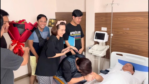 Trong video, Đình Tú (vai Hoàng Duy – con trai ông Long) đang ngồi bên giường bệnh nắm tay bố và gục đầu vào tay ông. Ông Long lúc này vẫn đang hôn mê sâu.