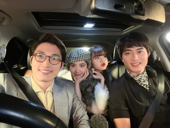 Trong một bức ảnh khác, Trang - Duy vẫn diện bộ trang phục trên và đi cùng cặp đôi Phong - Vân. Bộ tứ ai nấy đều lên đồ xinh đẹp, lồng lộn khiến dân tình dự đoán 2 cặp đôi đang cùng nhau lên bar.