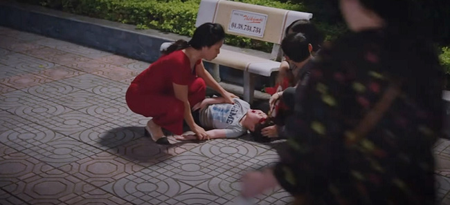Trong đoạn trailer phim trước đó, ở phân cảnh này bà Nga sẽ bị thông gia trách móc, bị con gái trút giận vì để cháu ngã.